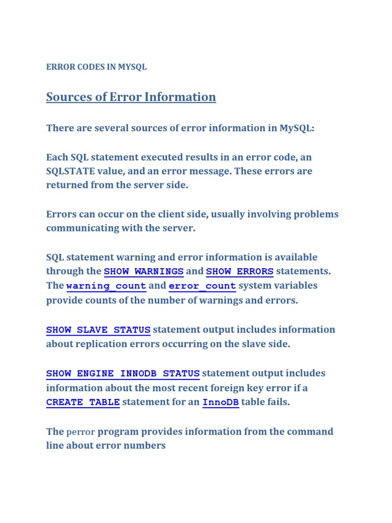 Error Codes In Mysql Network Socket Data Management